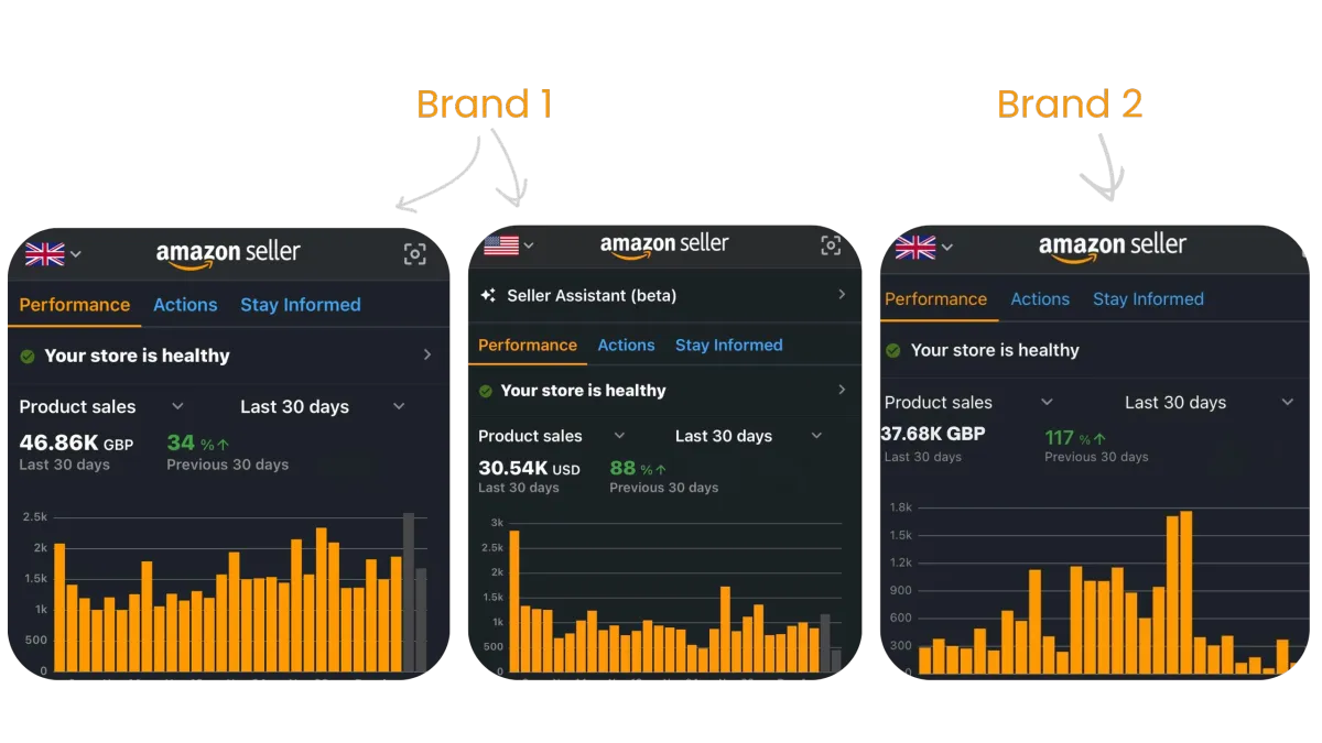 - And today I still run two active Amazon brands doing over £100k p/m combined across multiple international marketplaces.